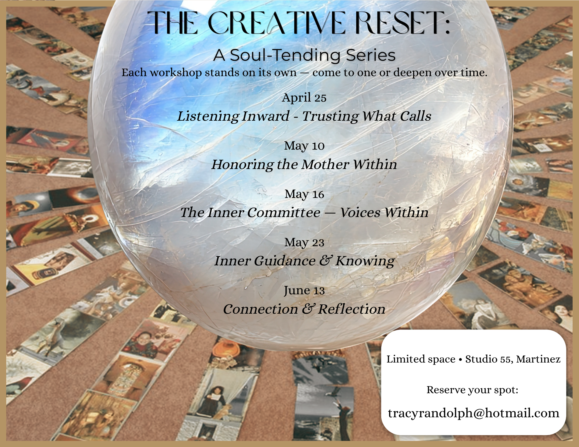 The Creative Reset with Tracy Randolph Saturday, June 13, 2026 5:00 PM 6:00 PM Studio 55 Martinez 55 Howe Road Martinez CA United States (map) Google Calendar ICS