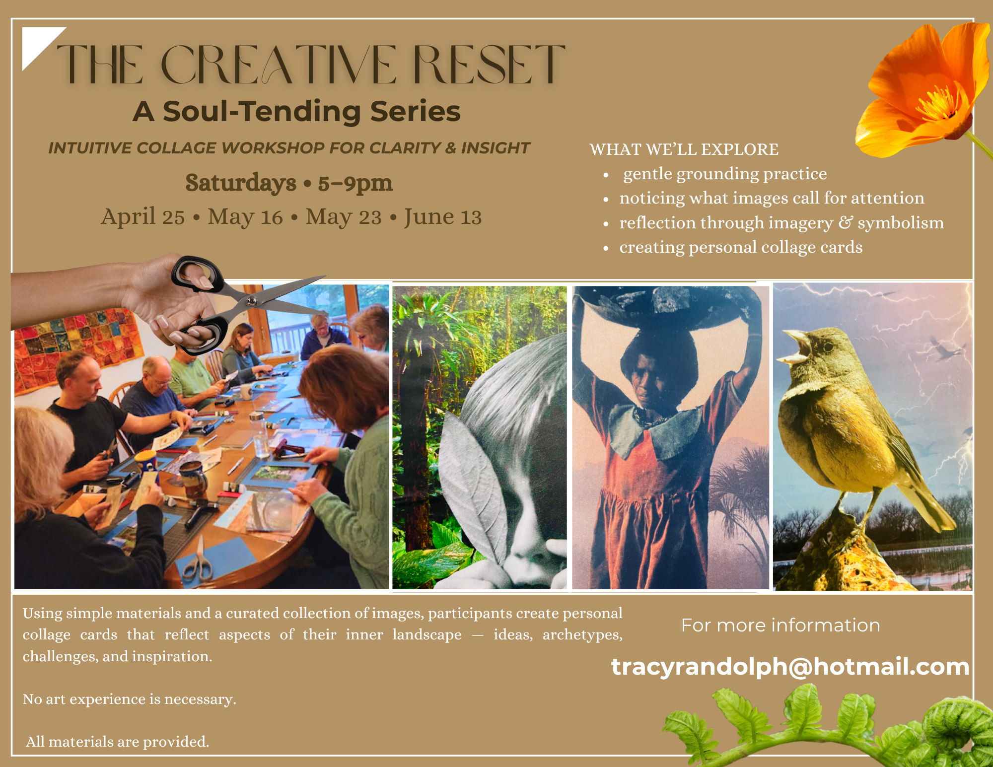 Back to All Events The Creative Reset with Tracy Randolph Saturday, June 13, 2026 5:00 PM 6:00 PM Studio 55 Martinez 55 Howe Road Martinez CA United States (map) Google Calendar ICS